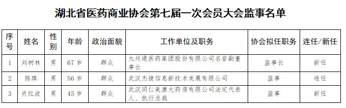 湖北省医药商业协会第七届一次会员大会负责人名单